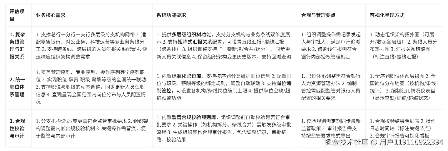 银行组织架构的条线化和职位体系的规范性决定了人力资源数字化系统在组织管理方面的特殊需求。银行的人力资源管理数字化系统很难离开对组织架构的精确管理。作为金融行业的重量级机构,银行拥有庞大的分支机构网络,其层级关系包括从总行到分行再到支行的多级管控模式。在这一结构中,系统必须能够动态展现复杂的矩阵式管理模式,并确保职位体系与监管要求的完美结合。