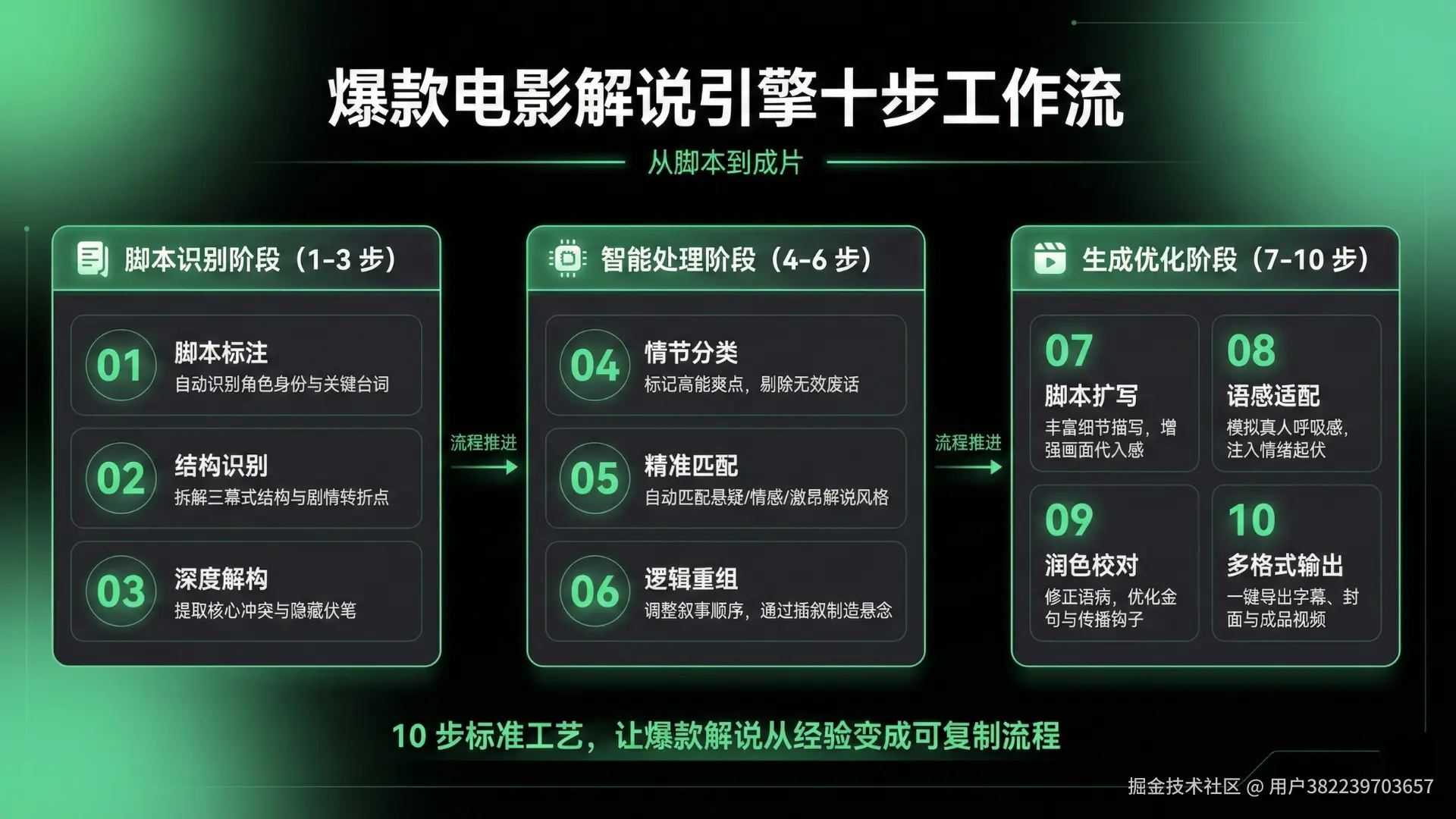 - AI 生成结构化解说文案 按剧情递进,而不是胡编乱造