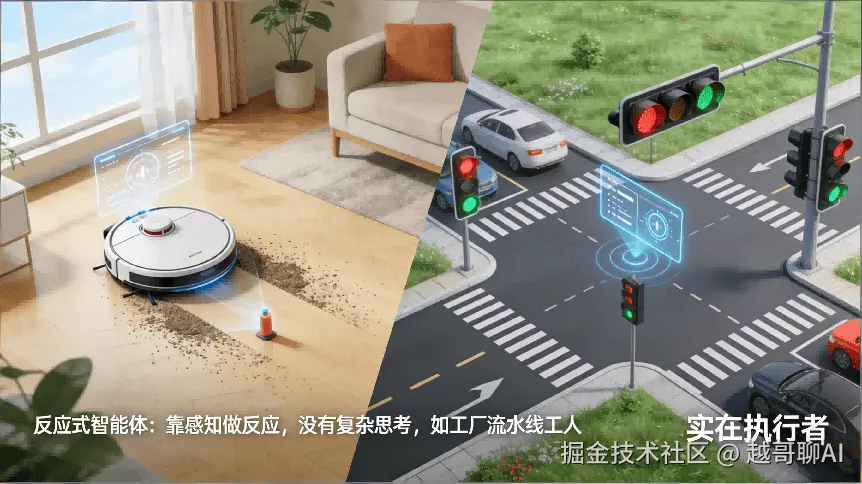 生活里最典型的就是扫地机器人,通过底部红外传感器感知障碍物就自动转向,检测到灰尘密集区就加大吸力,全程没有“扫完客厅”的明确目标,只是单纯对环境刺激做反应。还有路口的智能红绿灯,根据车流量传感器数据调整信号灯时长,也属于这类智能体。