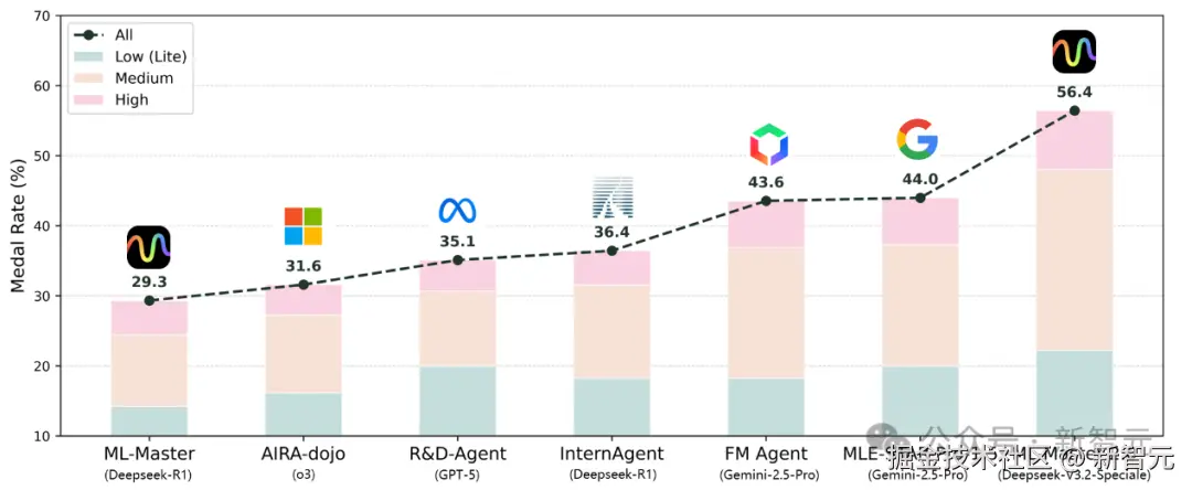 结合 EigenAI 提供的稳定高性能 AI 基础设施,该智能体基于国产大模型 DeepSeek-V3.2-Speciale,「在」 「MLE-bench」 「上击败 Google,Meta,Microsoft 等团队构建的一系列智能体,取得全球第一的成绩。」