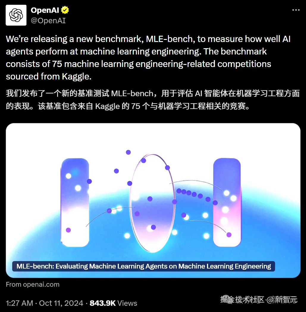 因而,OpenAI 所提出的 「MLE-bench」 中所聚焦的机器学习工程(「Machine Learning」 **Engineering, MLE)**任务,恰恰成为 「AI4AI」 场景下极为贴切的研究对象。