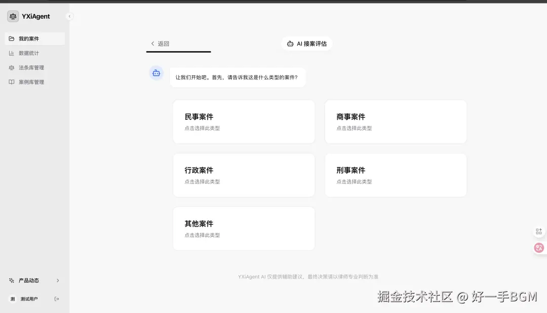 | 风险评估智能体 | 在接案阶段给出案件风险等级、胜诉可能性与收费建议。 |