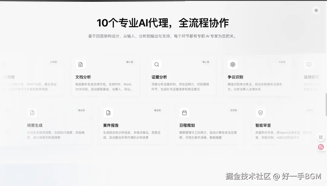 它不是一个简单的工具箱,而是一套以多智能体协作为基础,覆盖法律工作完整闭环的一站式智能工作台。它的核心价值在于: