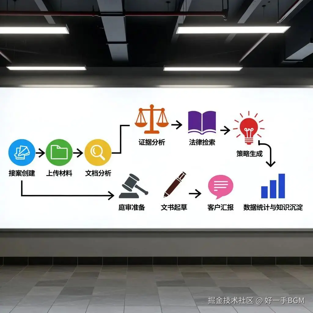 当需要将这些分散的工具串联起来,完成从客户咨询、材料分析、策略制定到最终汇报和知识沉淀的完整流程时,效率的瓶颈依然存在。数据孤岛、流程断裂、重复劳动,这些都阻碍了法律服务质量的标准化和规模化。