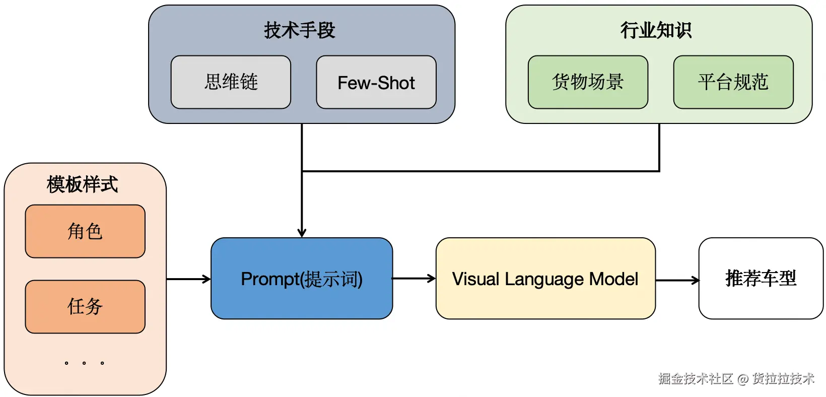 基于上述技术背景,拍货选车功能以Prompt为核心构建框架,对多模态输入进行一体化处理。 通过结构化的Prompt模板、动态的上下文管理和自适应的提示优化策略,以及独属于货运的行业知识体系构建了一个灵活、可扩展的大模型应用系统。