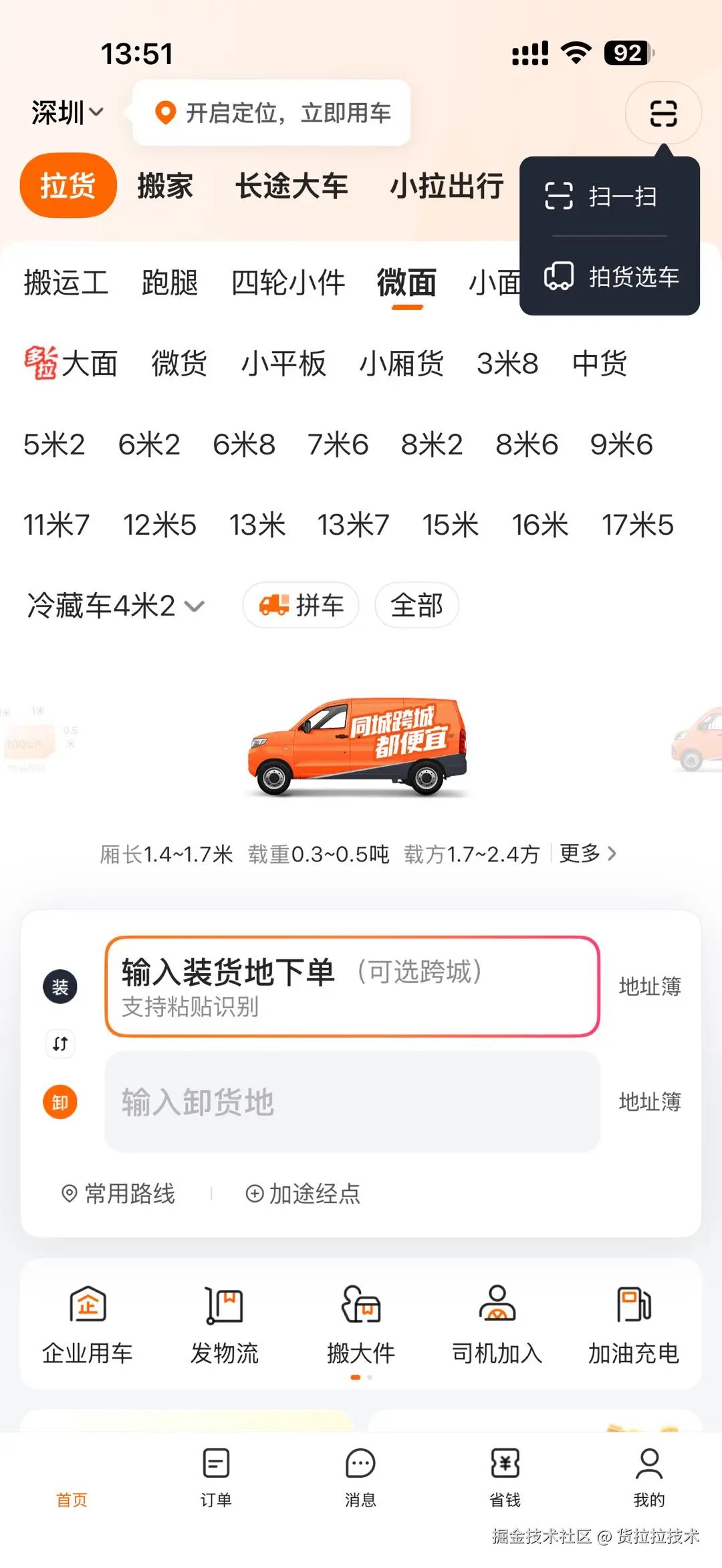 好消息是,我们创新推出了“拍货选车”解决方案。依托迅猛发展的AI技术,我们实现了用户只需用手机摄像头对准货物“拍一拍”,后端强大的算法即可智能分析,为用户精准推荐最合适的车型。这既大幅提升了用户、司机与平台三方的效率,又显著优化了用户的使用体验。选车难题,轻松化解!