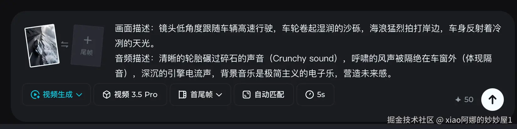光说不练假把式。为了验证这款提示词生成效果好的广告生成APP到底有多精准,我特意设计了两个对“光影、动态、声音”要求极高的商业广告场景。