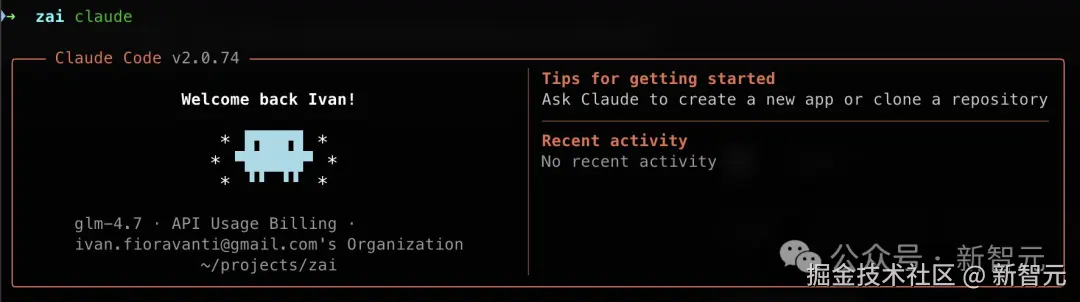 一键式配齐 API 等环境参数后,重启 Terminal,输入 claude,即可在 Claude Code 中使用 GLM-4.7 开启你愉快的 vibe coding 了!