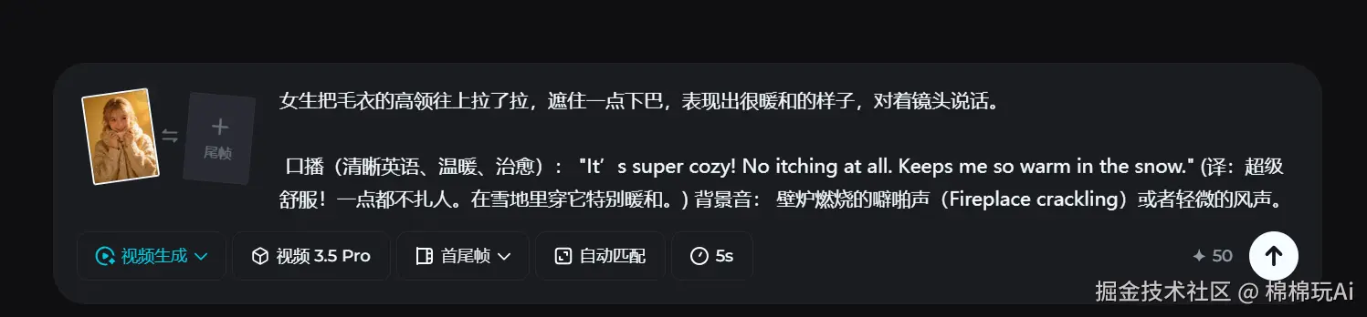 你在提示词里把“说什么、怎么说、环境什么声音、氛围什么音乐”写清楚,它会尽量把这条链路一次跑完。