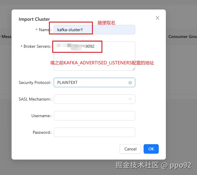 进入后点击右上角的Import Cluster然后填写配置