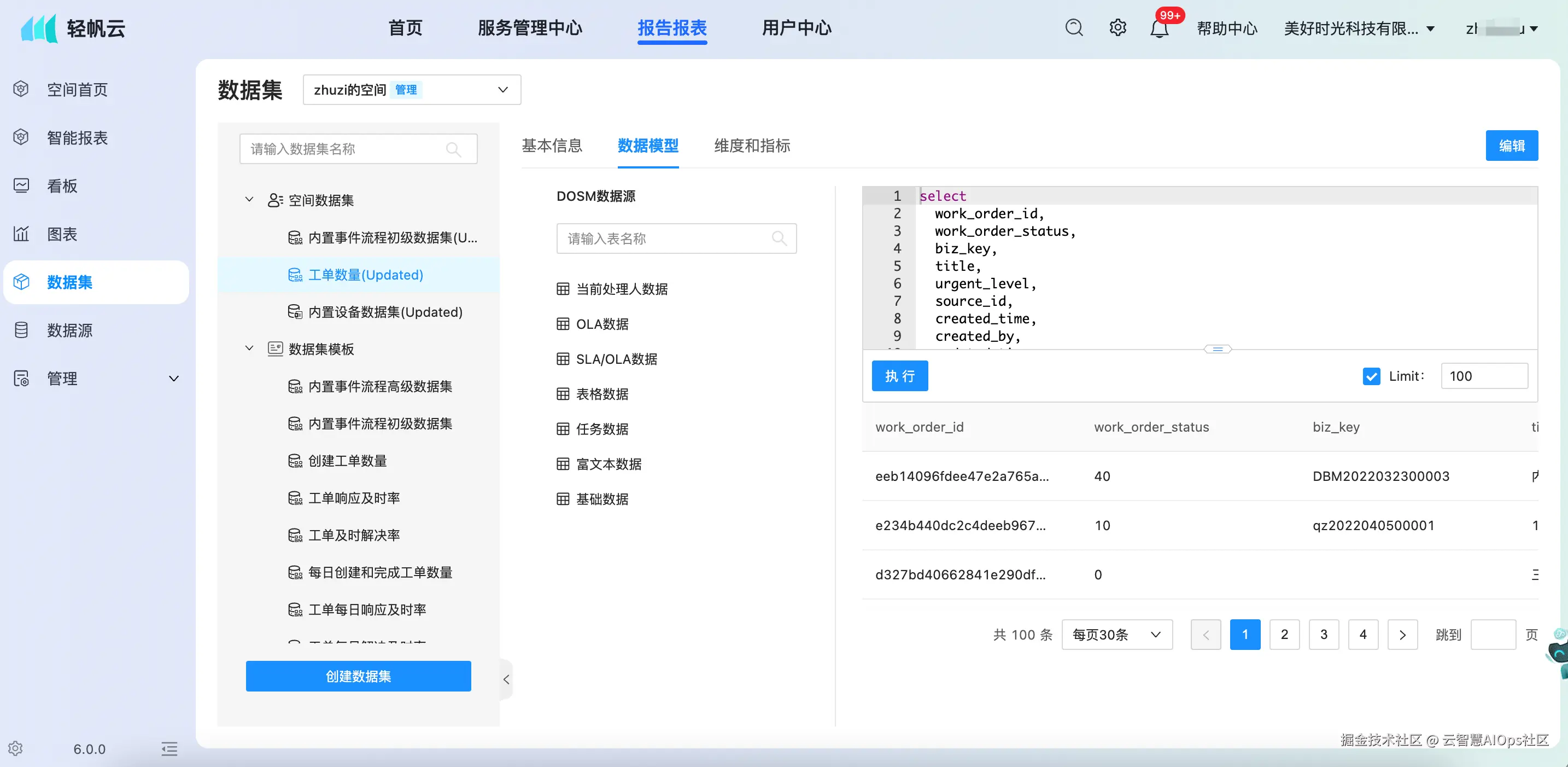 其次,通过灵活建模,将原始数据转化为标准业务指标。以ITSM工单数据为例,系统可基于工单的全生命周期信息,自动构建“工单响应及时率”“工单解决及时率”“每日创建与完成工单量”等核心效能指标。用户还可通过可视化拖拽或SQL方式,进一步定义更复杂的分析模型。