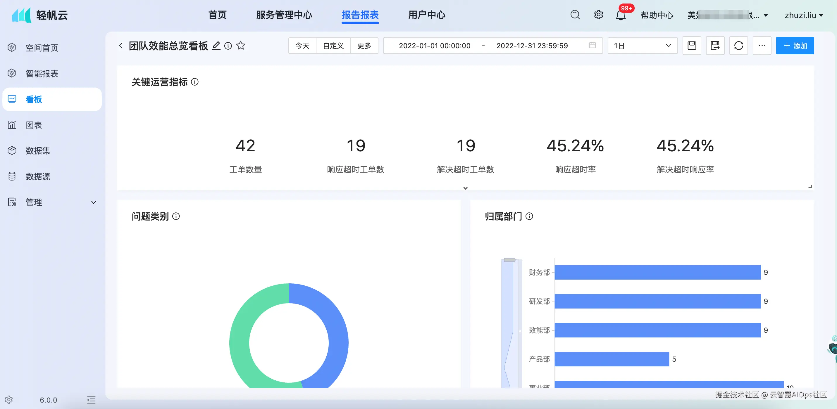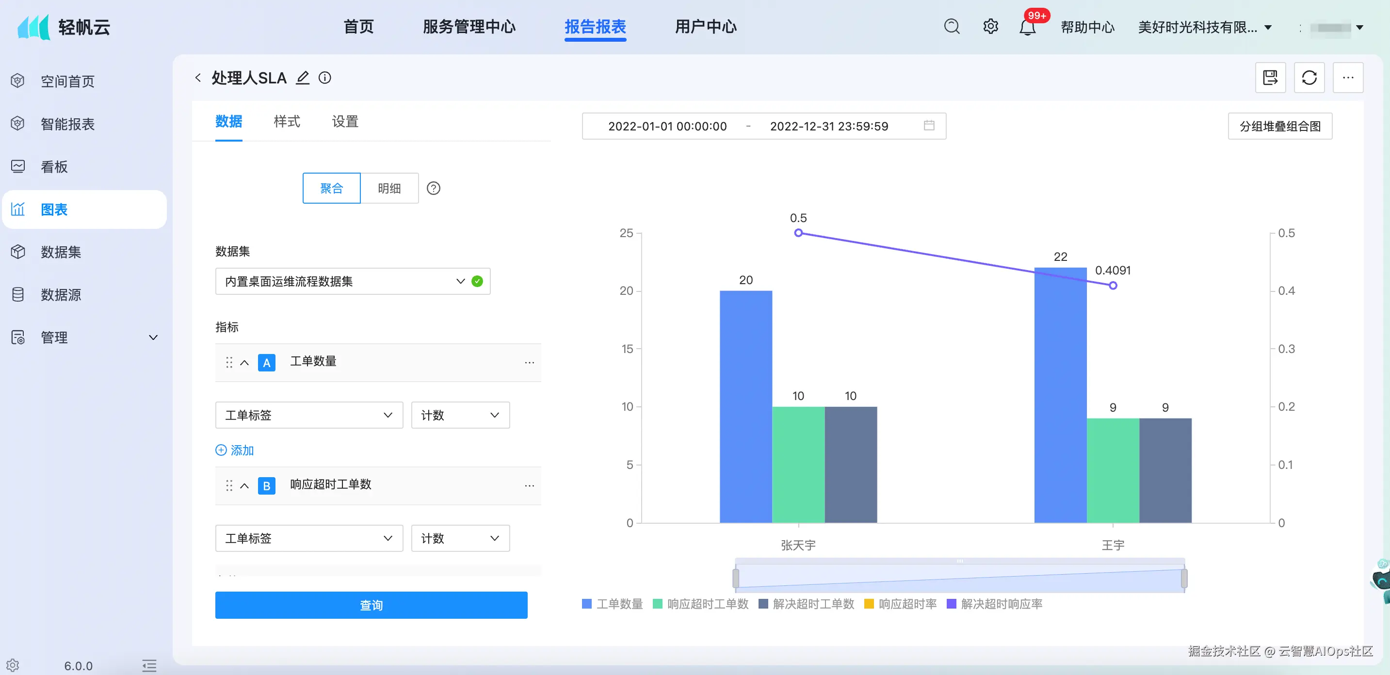 告别模糊的主观评价,关键在于建立一套客观的数据化衡量体系。云智慧轻帆云智能ITSM平台,通过 「报表中心」 与 「飞鱼」低代码可视化编排平台,为IT部门提供从数据整合、多维分析到价值呈现的完整闭环,让年终考评成为展现团队价值的契机。