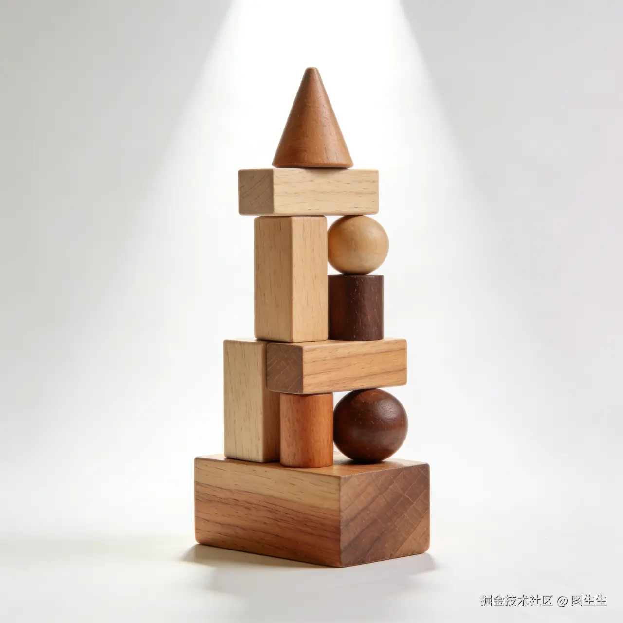 ▷原图:原木色木质积木白底图