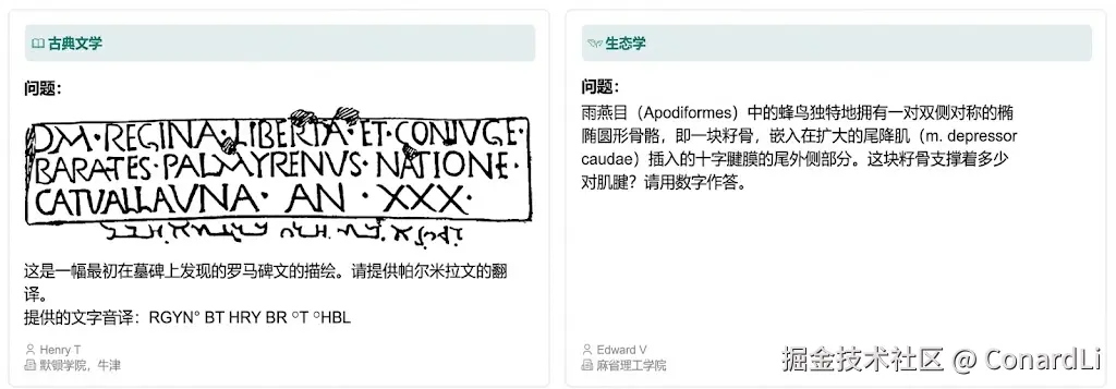 - 高阶学术推理:在科学问题里做多步推导、排除干扰选项(即使允许上网也很难直接搜到答案)