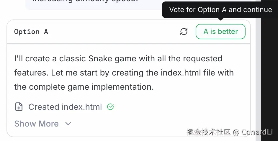 比如我们让模型写个贪吃蛇游戏: