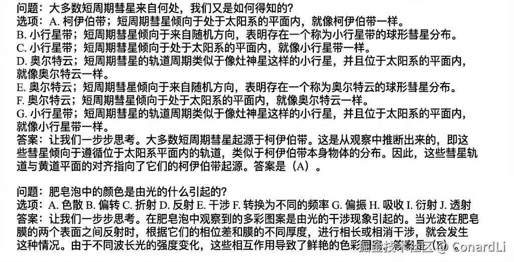 可以看到,不仅包括了 10 个选项,答案中还附带了推理过程(COT)。