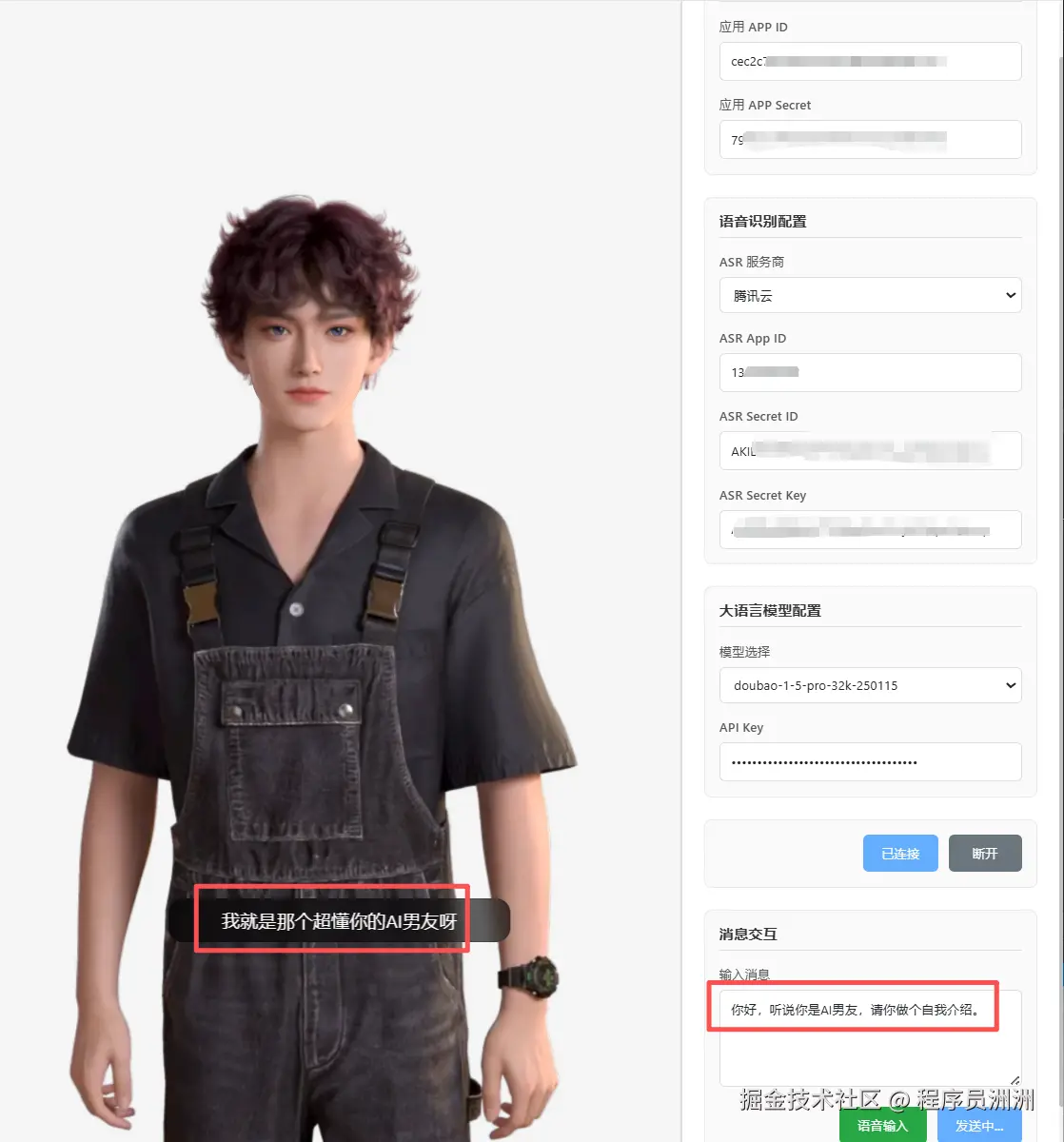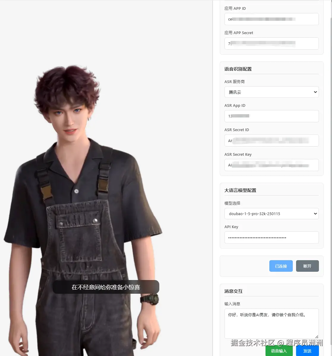 接着我们需要配置语音和大模型相关密钥。