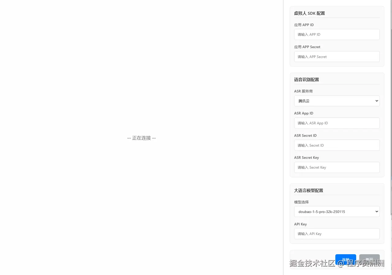 如下图所示,这个Demo是一个基于Vue 3 + TypeScript + Vite的数字人交互演示项目,集成了星云数字人SDK、腾讯云语音识别(ASR)和多种大语言模型(LLM)。