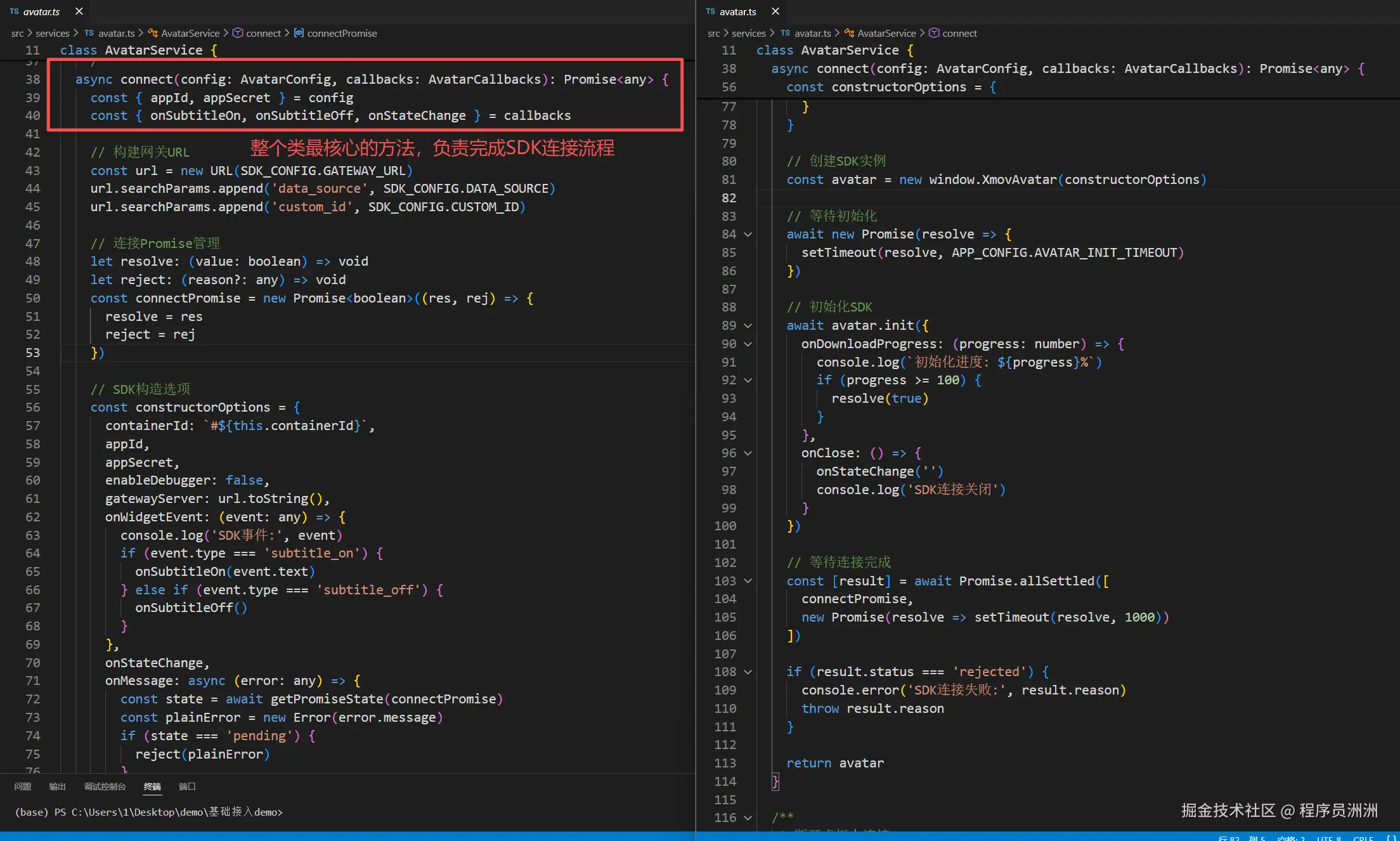 - onStateChange:虚拟人状态变化时触发,接收状态字符串。 我们来看看SDK连接的核心逻辑