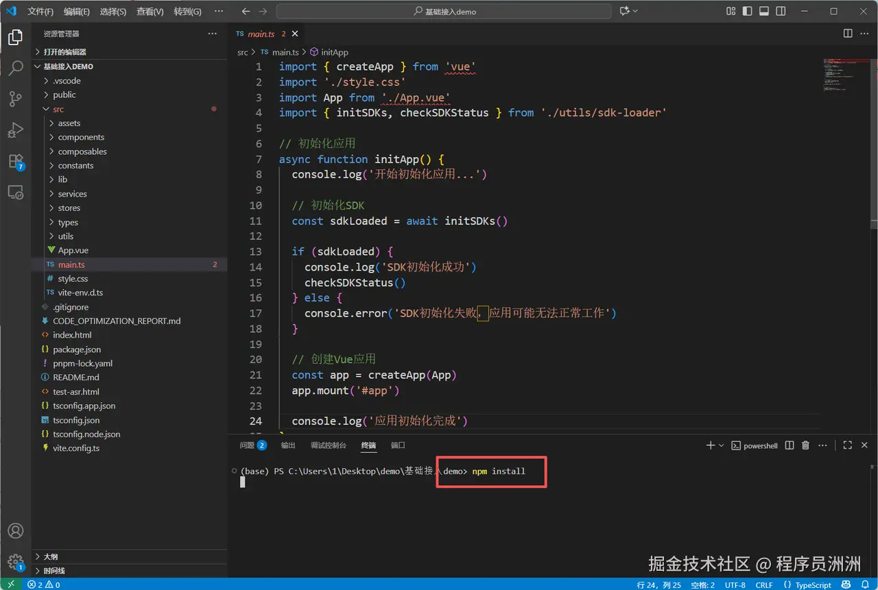 接着我们在控制台输入npm install命令安装基础依赖即可。