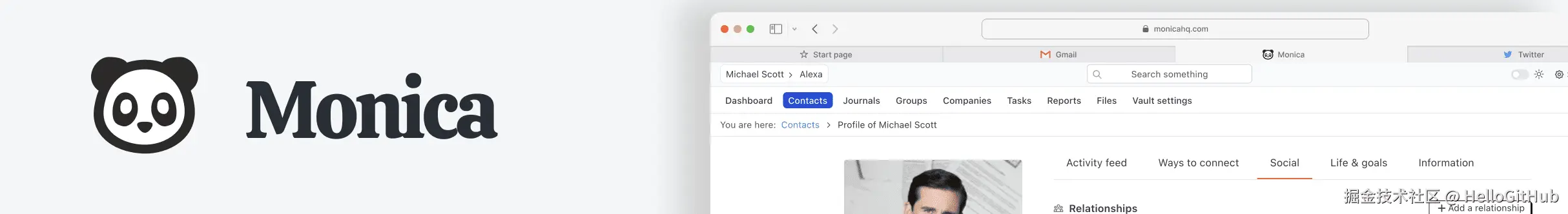 20、monica:开源的个人关系管理系统。这是一款基于 Laravel 和 Vue.js 构建的个人关系管理系统,可用于记录和管理与朋友、家人之间的互动细节,比如人情往来、生日提醒和活动安排等。