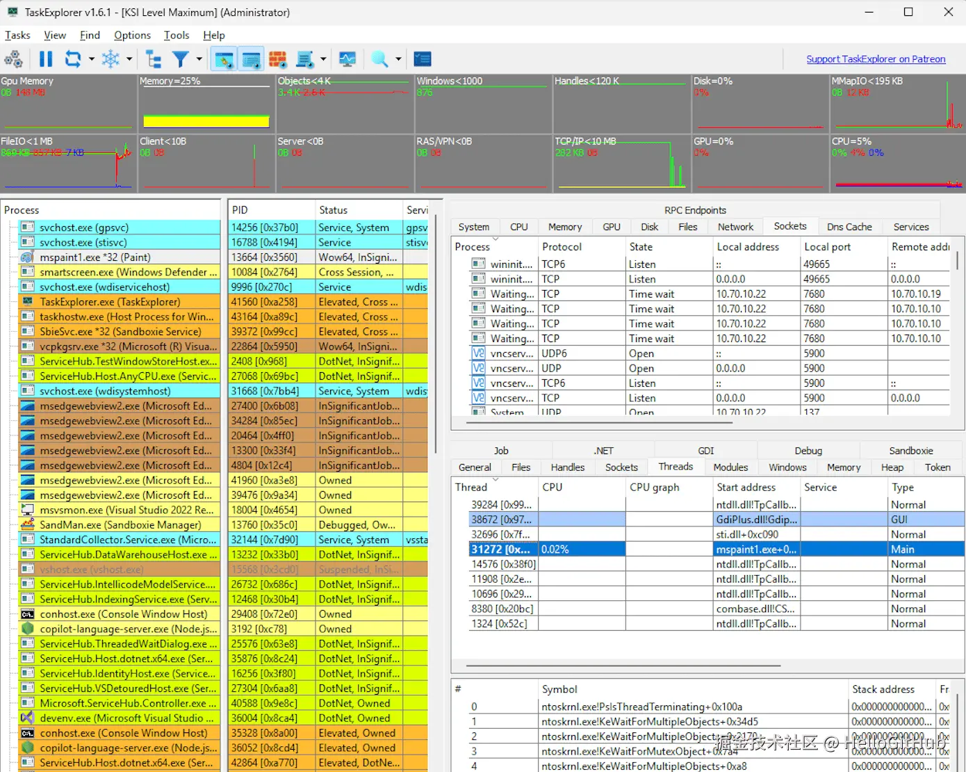 2、TaskExplorer:更强大的 Windows 任务管理器。这是一款适用于 Windows 平台的高级任务管理工具,相比系统自带的任务管理器,能够实时显示更详细的进程信息,包括线程堆栈、文件句柄和网络连接等。