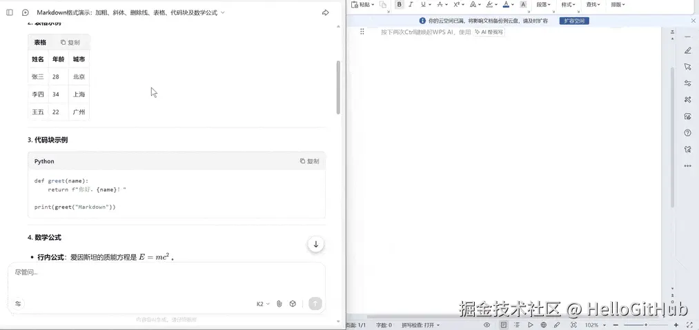 24、PasteMD:一键将 AI 生成内容粘贴到 Word。这是一款基于 Python 的 Windows 托盘工具,可自动将剪贴板中的 Markdown 和网页 AI 的富文本回复,通过 Pandoc 转换为 DOCX 格式,并直接插入到 Word/WPS 光标所在位置。