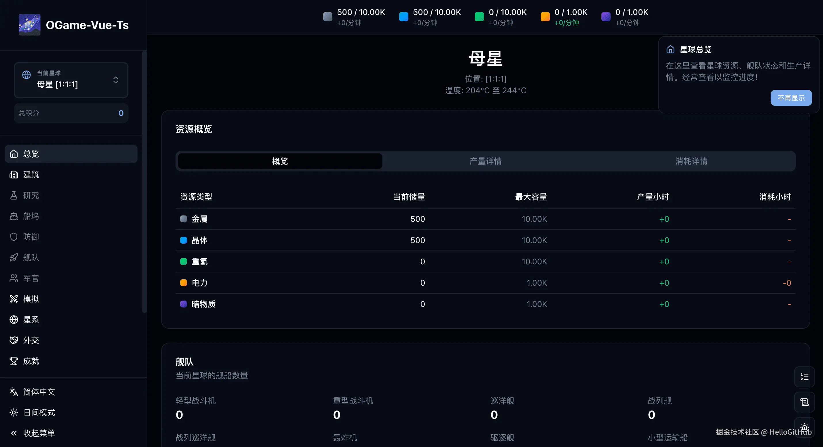 16、ogame-vue-ts:纯文字的太空策略游戏。这是一款基于 TypeScript 和 Vue 3 构建的纯文字太空策略游戏,灵感源自经典的 OGame 银河帝国游戏。玩家将在银河系中建设行星与月球、发展科技、打造舰队和防御系统,并进行进攻星球、军官招募等策略玩法。来自 @谦君 的分享