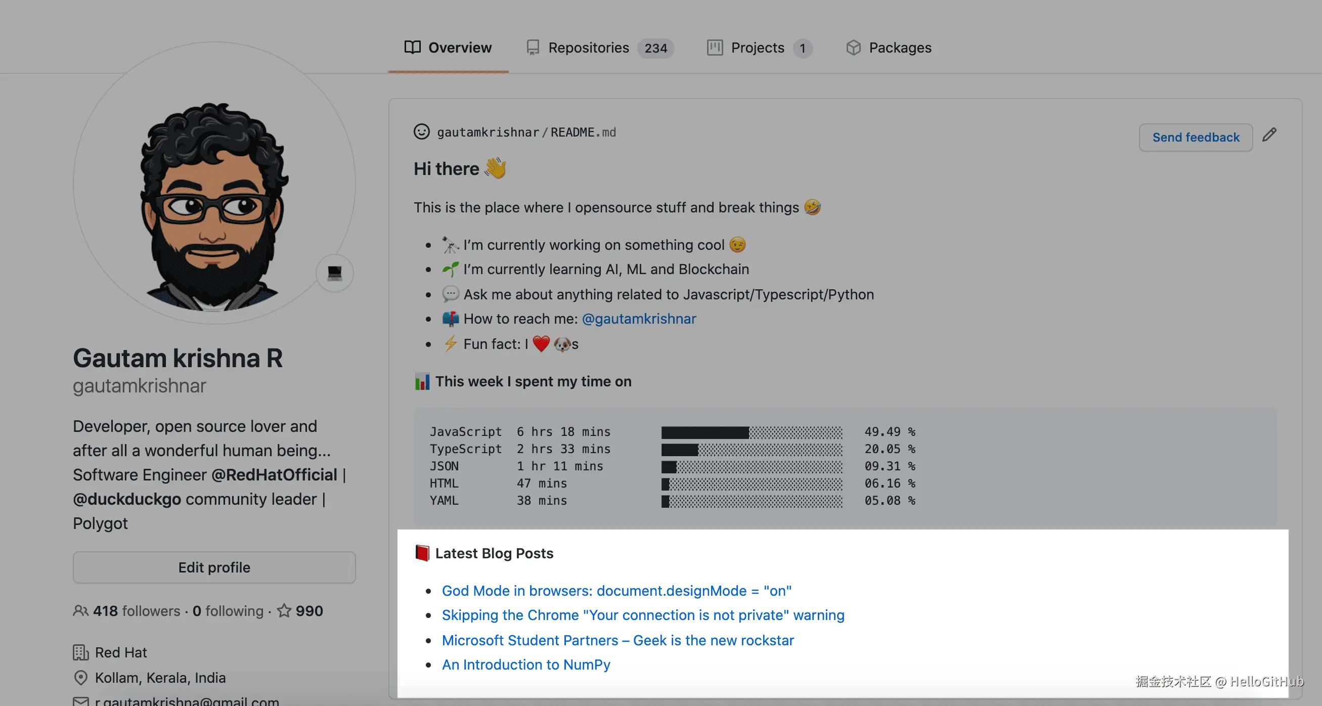 34、blog-post-workflow:GitHub 个人主页动态自动同步工具。这是一个 GitHub Action 工具,可将你最新的博客文章或其他 RSS 源内容,自动同步展示在 GitHub 个人首页或项目 README 中。