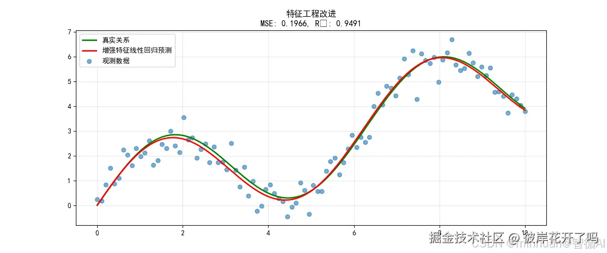 print(f"线性模型训练MSE: {mean_squared_error(y_noisy, y_pred_linear):.4f}")