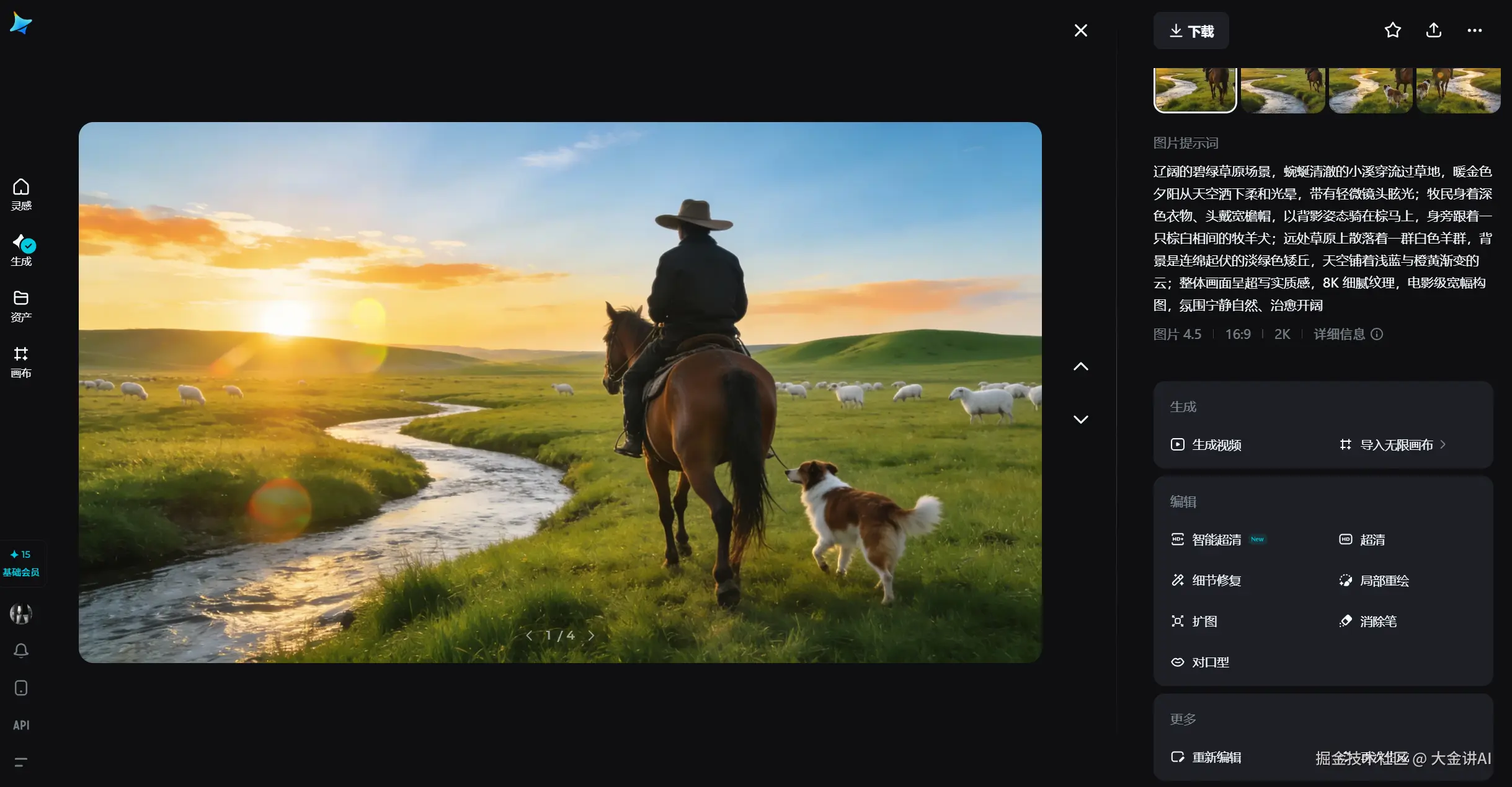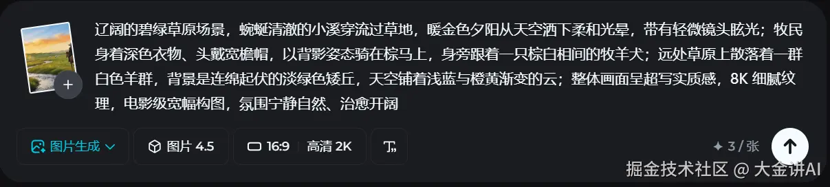 首先使用即梦的生图能力,生成一张风格明确、主体清晰的画面,用来作为视频的视觉基础。