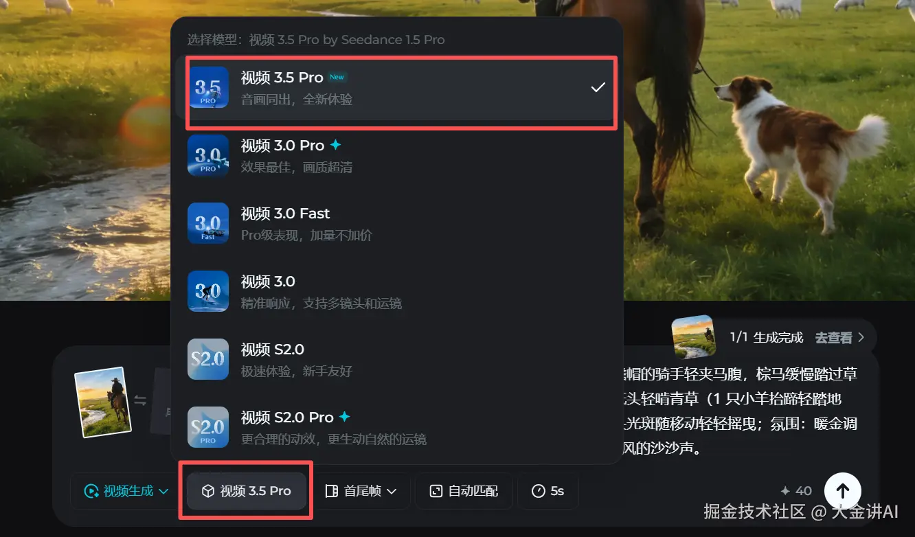 接下来切换到即梦视频 3.5 Pro 模型。