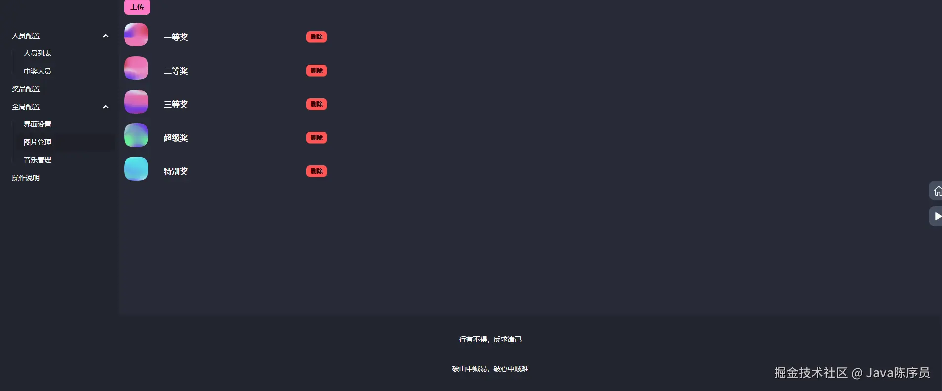 - 奖品配置