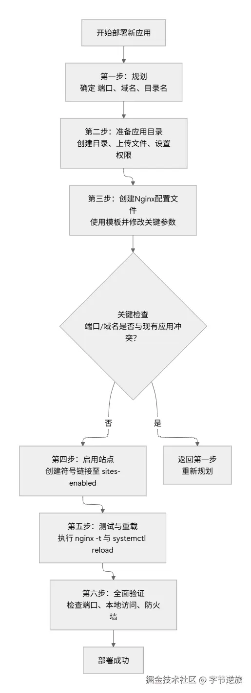 | 3. 网站根目录 | 在 /var/www/ 下创建独立新目录。 | /var/www/project-b | 目录名清晰,与项目对应。 |