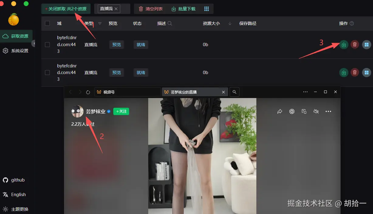 4、在数据抓取这里改为“直播流”打开视频号的直播间,点击进去,直播流就出现在软件列表中了