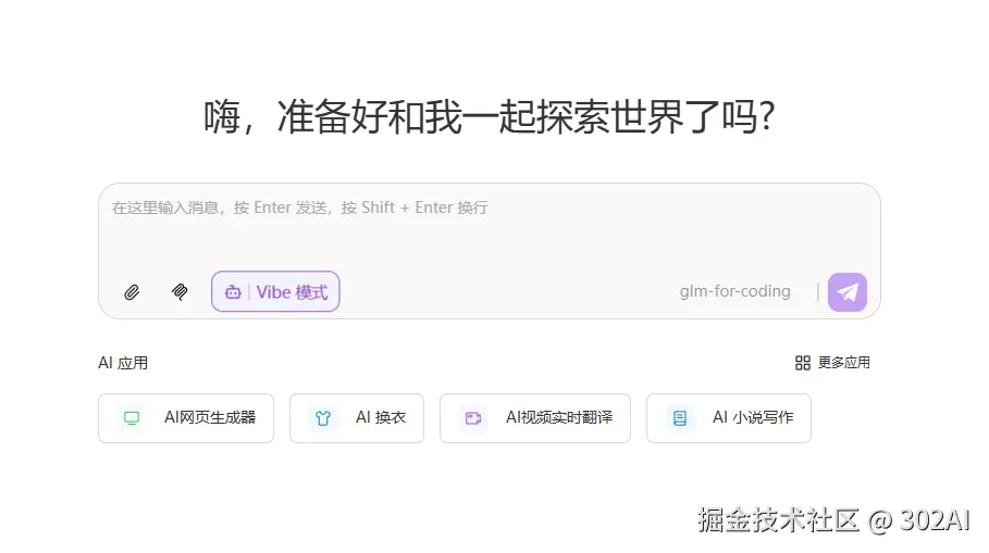 选择要使用的模型,上图以GLM-For-Coding为例,点击 Vibe 模式