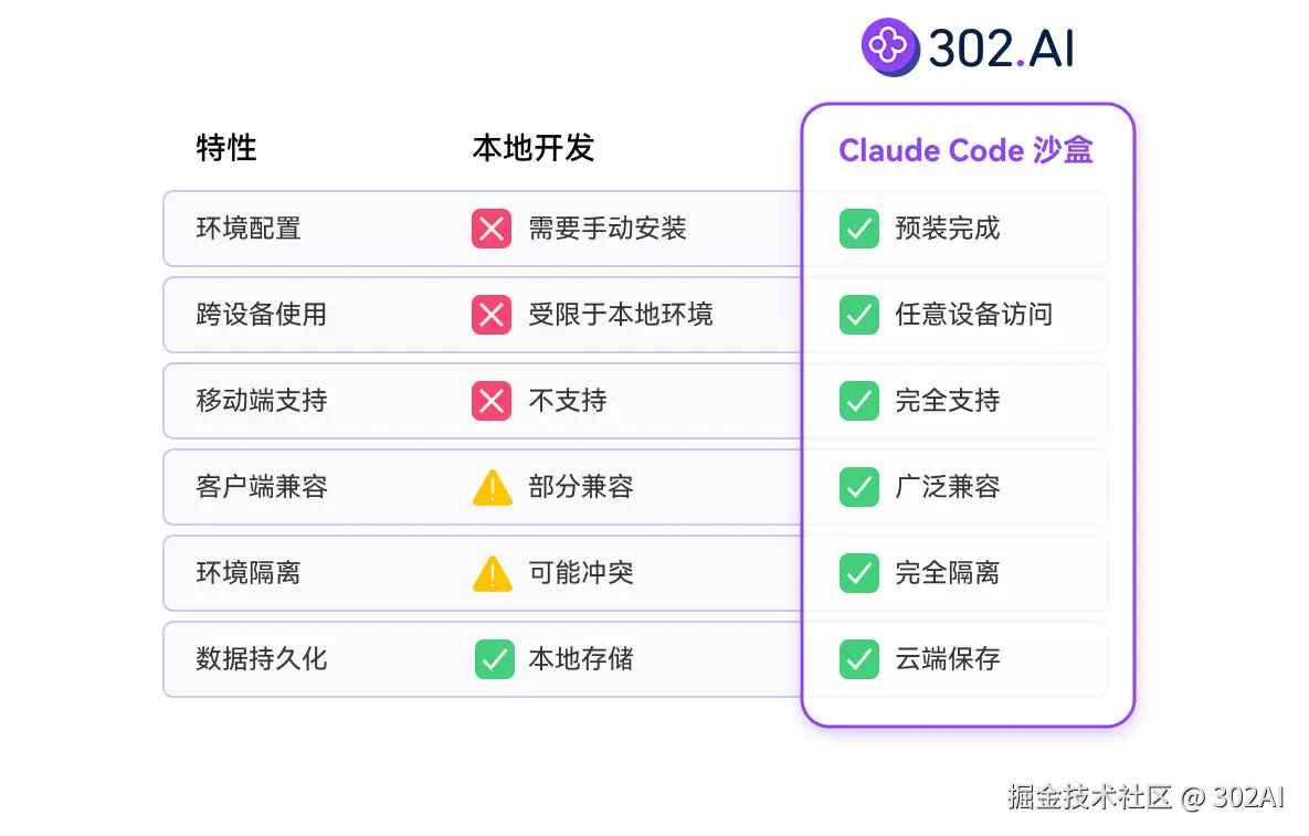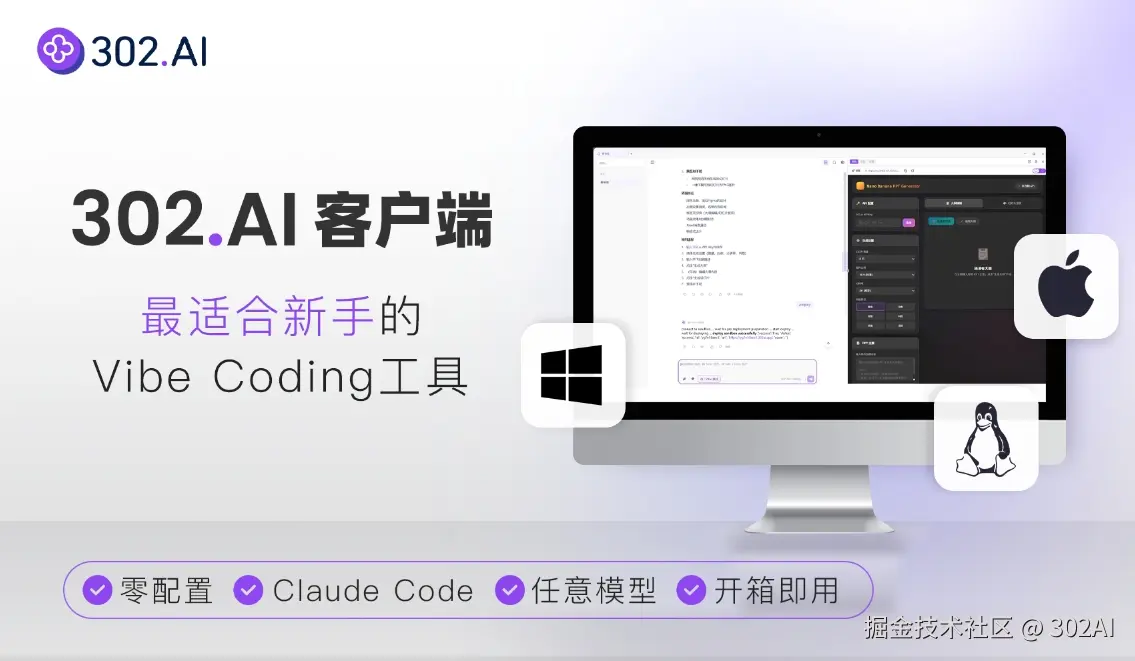 为了打破这些壁垒,302.AI 正式推出了内置 Claude Code 沙盒功能的全新 AI 客户端。我们不仅让 Vibe Coding 的体验变得前所未有的简单顺畅,更为用户赋予了极致的扩展性与掌控权,让创造真正随心所欲。