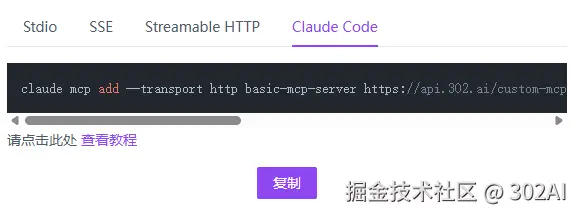 在弹出的界面窗口中,选择Claude Code,复制该参数