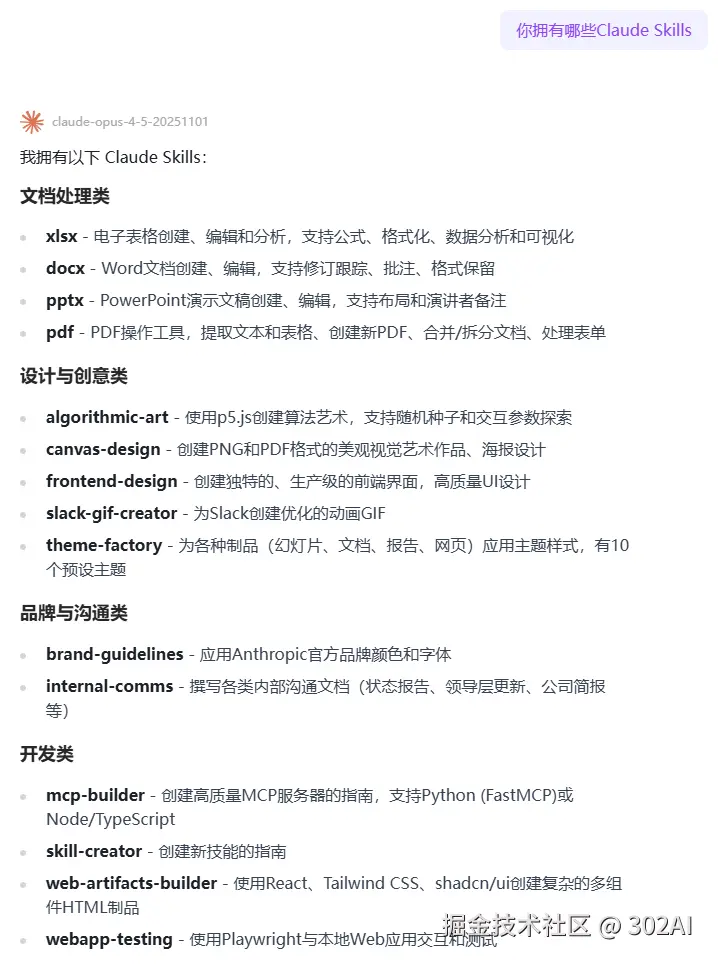 3. 预装了丰富的Claude Skills