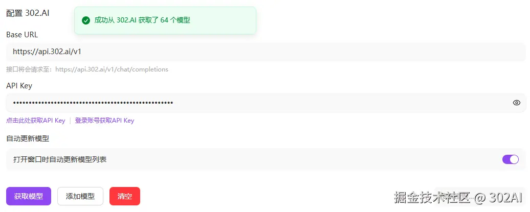 在302.AI的管理后台进入自定义模型页面,进行设置即可,页面也有相应的详细教程。