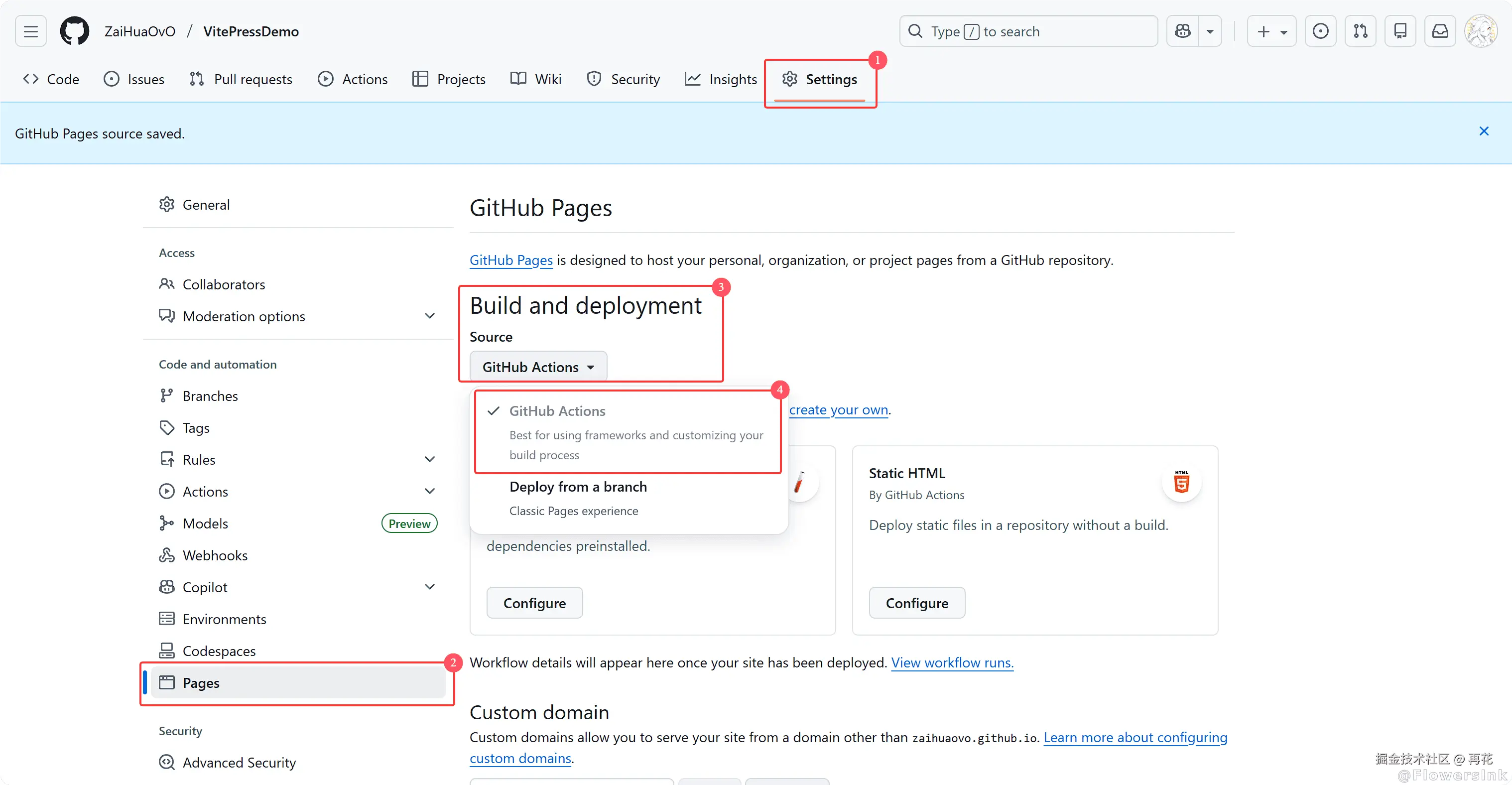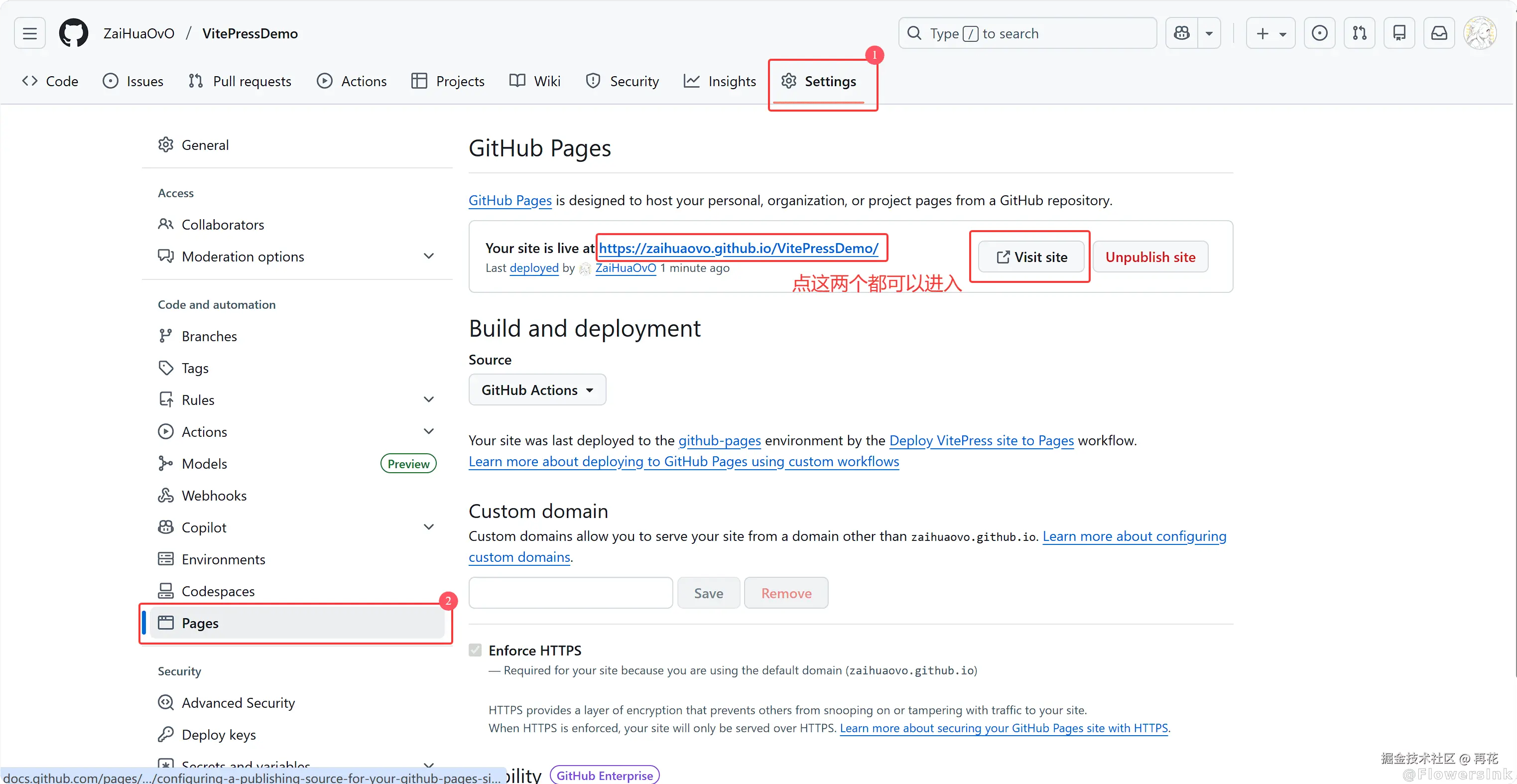 查阅了网上许多VitePress+Github Pages的部署教程,发现要么不完整、要么过时、要么不够详细