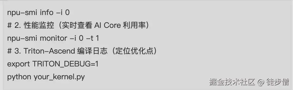 | Cube 单元未命中 | 性能仅为理论值的 10% | 矩阵分块未按 16 对齐 | 强制 BLOCK_M/N/K=16;非 16 倍数维度手动补齐 |