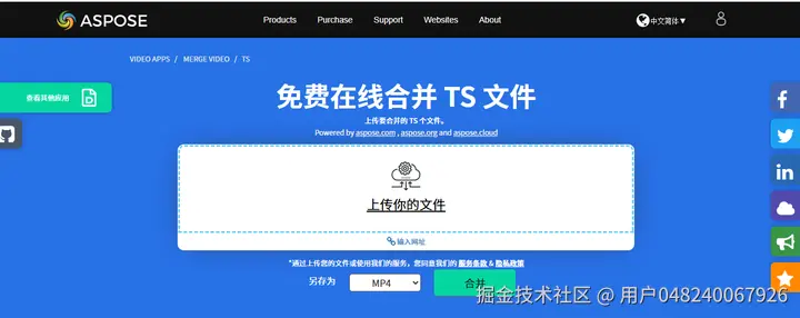 Video Merger可以免费在线合并TS个文件,只需上传TS文件,接着选择合并另存为“MP4”即可。但是使用它合并大文件可能需要一些时间,因为该过程通常需要对数据进行编码和解码。