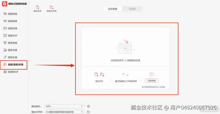第一步,选择“视频(音频)拼接”功能,通过“添加文件夹”或直接拖拽导入多个TS文件。