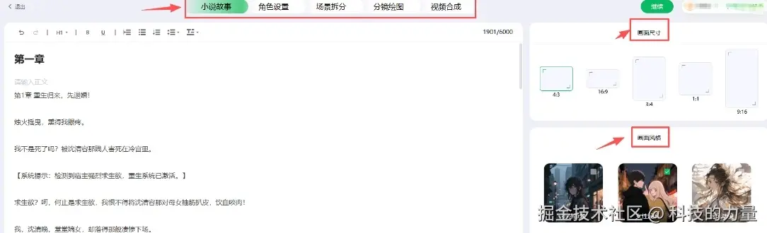 其中我爱用的是AI漫剧制作。首先导入小说文档,选择风格、视频尺寸。