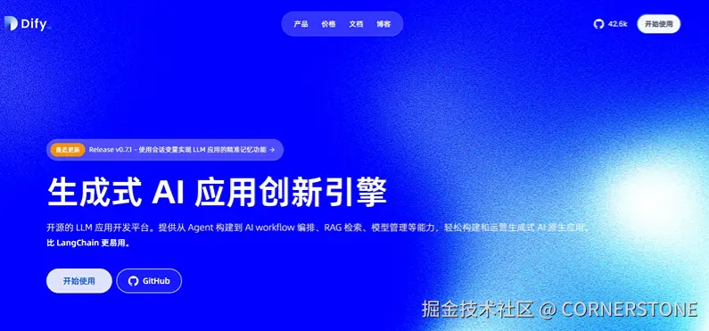 1、关键技术栈支持:dify内置了构建LLM应用所需的关键技术栈,包括对数百个模型的支持、直观的Prompt编排界面、高质量的RAG(Retrieval-Augmented Generation)引擎以及灵活的Agent框架。