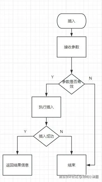 在信息的插入流程中,主要的流程主要可分为以下几步。首先就是需要接受要插入的信息,之后要对要插入的信息进行过滤。验证需要插入的信息是不是满足插入的条件。比如插入的信息是不是已经存在,插入的信息是否合法。若满足插入的条件,则将插入的信息存在数据库中。插入成功后返回插入成功的信息。反之则返回错误信息。以下是插入操作的流程图: