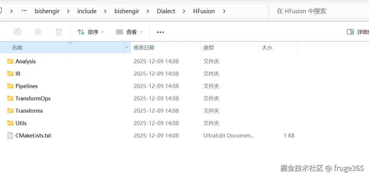- hybrid fusion: 位于 bishengir/include/bishengir/Dialect/HFusion。这是图层面的 IR,主要描述算子的逻辑(如 Add, MatMul),不关心数据具体在哪里(GM vs UB)。