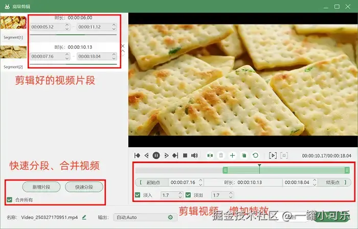 第三步:录制结束后,有后期处理需求的用户可直接点击 【高级剪辑】 功能键,对视频进行分段切割或添加特效等操作。