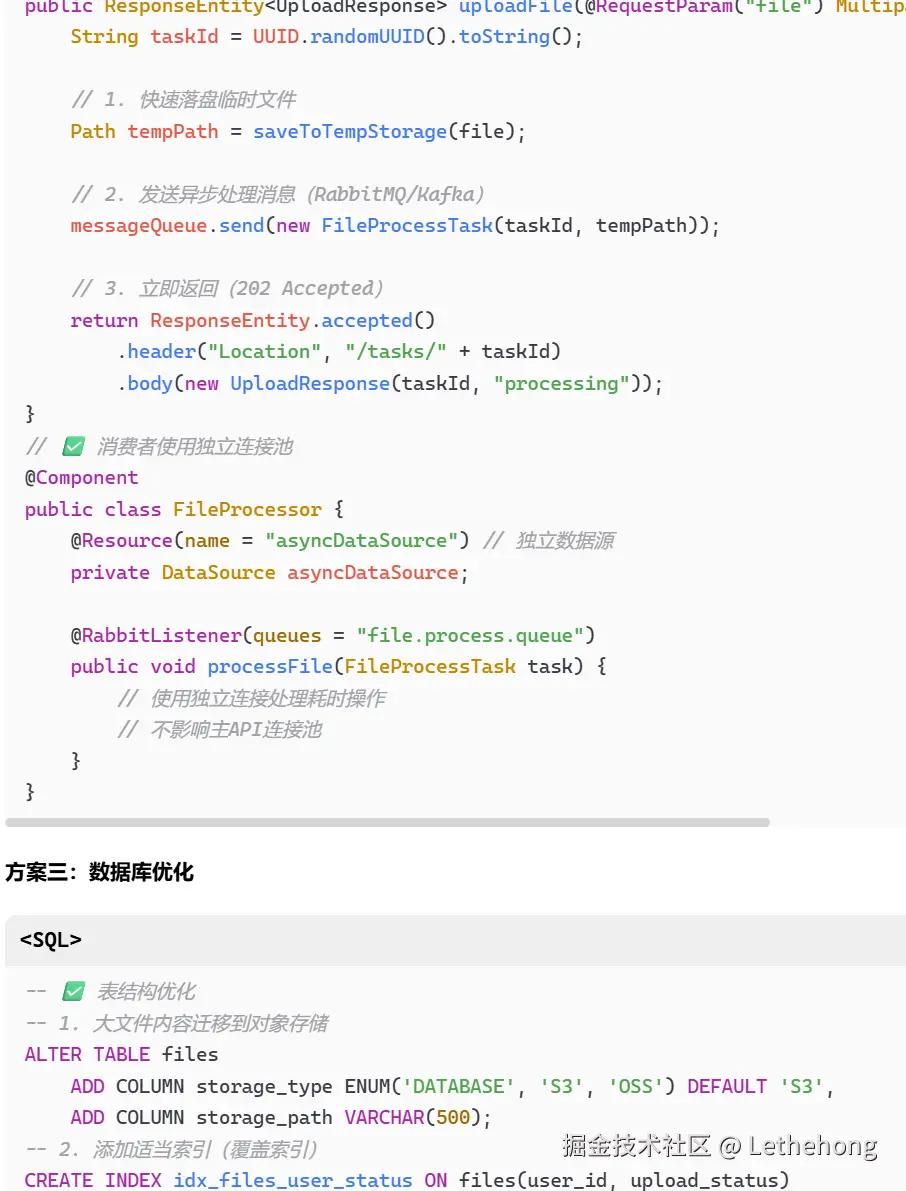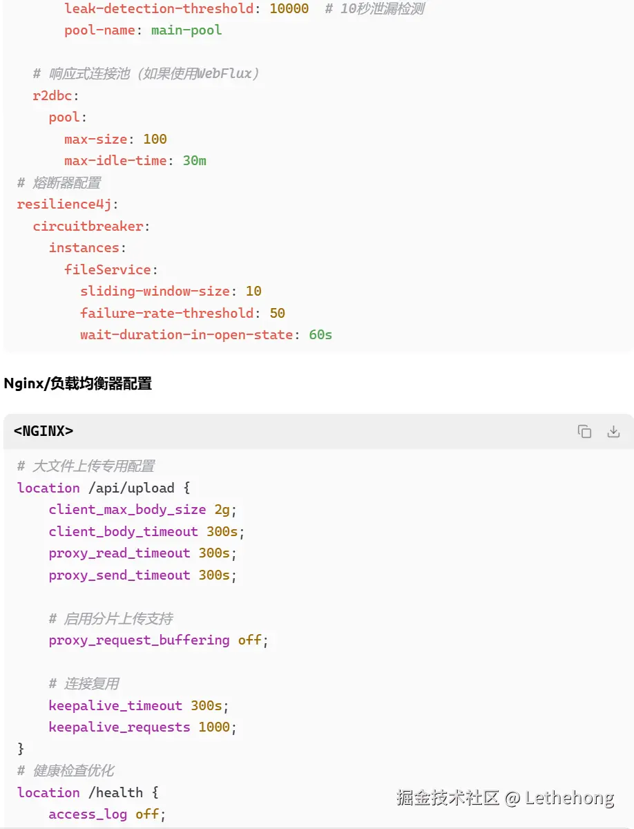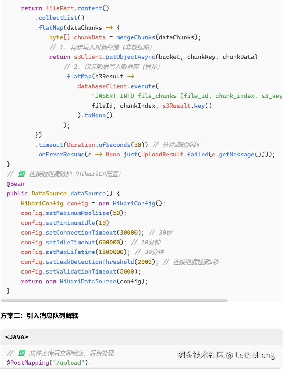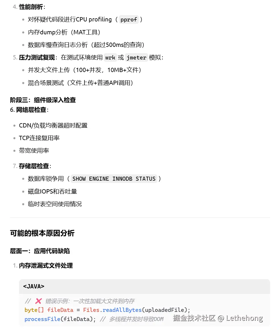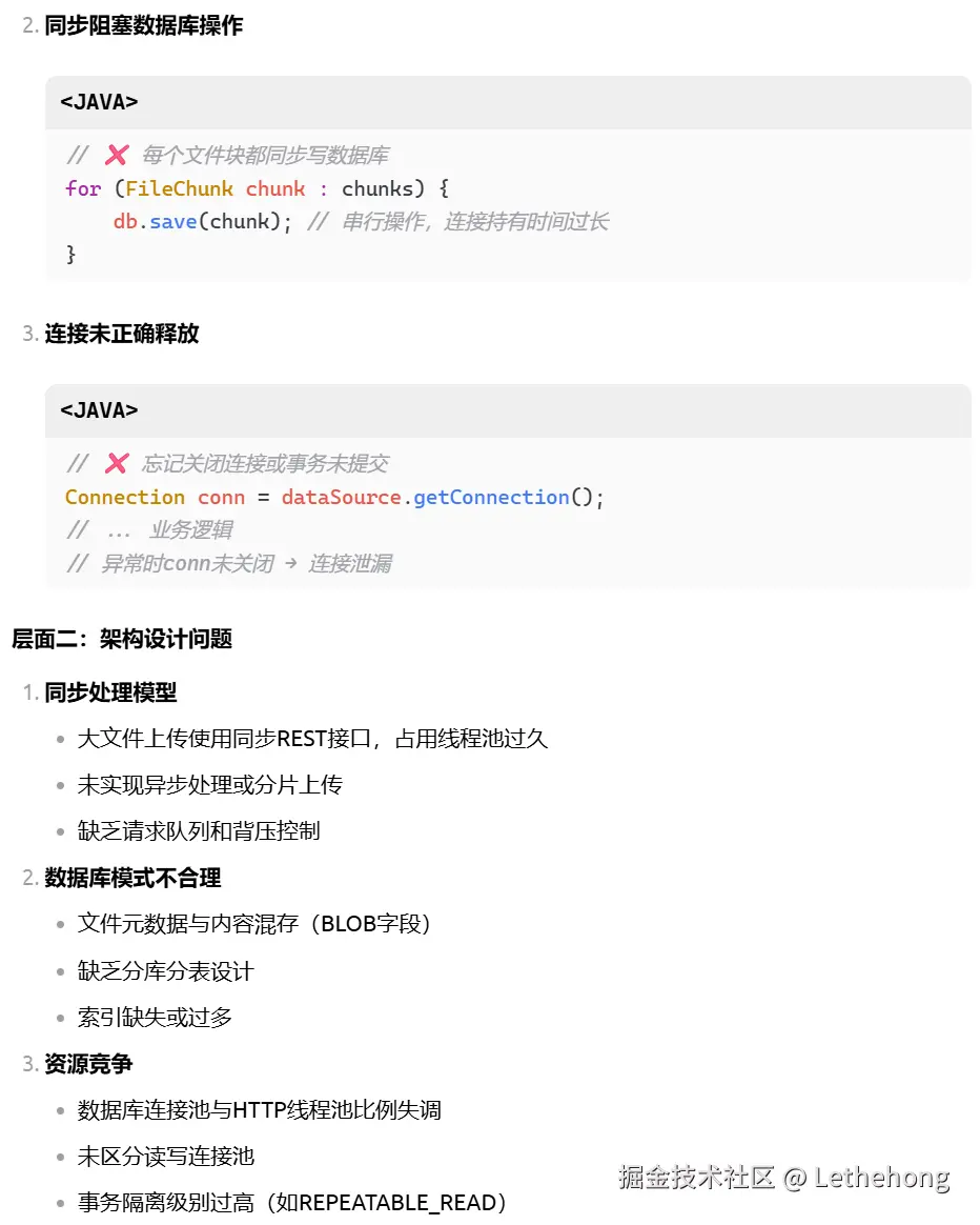 代码层:文件上传阻塞、数据库连接泄露、缺乏异步处理